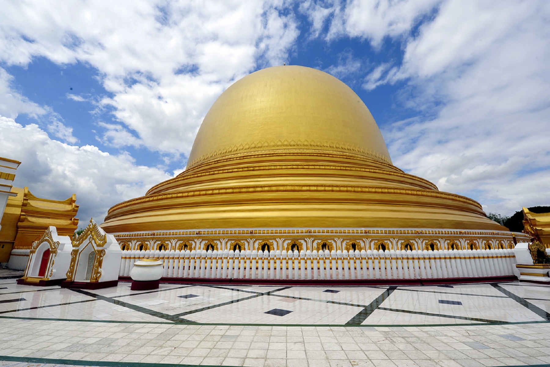 Have breakfast at hotel. Depart Mandalay on a private boat along the Ayeyarwaddy River to visit Mingun, a village on the west bank of the river. Visit to Settawya Pagoda, Mingun Pahtotawgyi, the world renowned ringing Mingun Bell and Myatheintan Pagoda. In the afternoon, visit Mandalay City by Mini Oway 3 Wheels Motorbike. Overnight at hotel in Mandalay. (B)